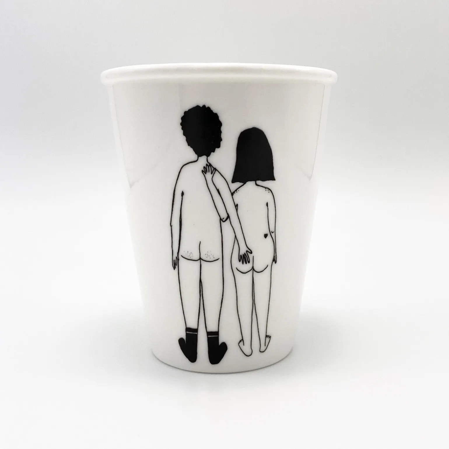 cup „naked couple back“ – helen b – Keramik Becher mit handgemachter Illustration als Motiv.