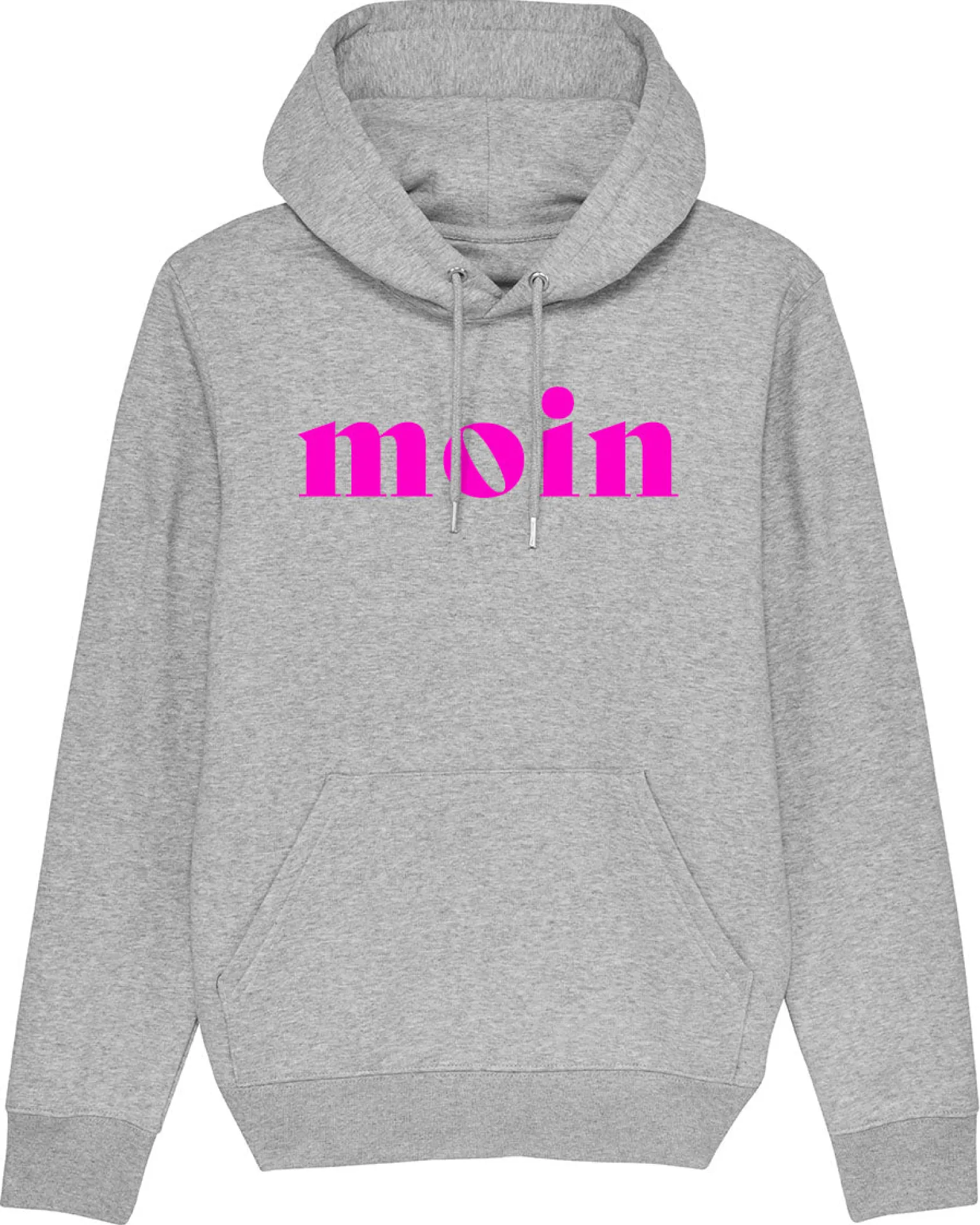 Sweatshirt „Moin“ Heather Grey/Neonpink – Unser Moin Sweater ist ein klassisches Unisex Sweatshirt in Grau mit einem freundlichen Moin im knalligen Neonpink auf der Brust.