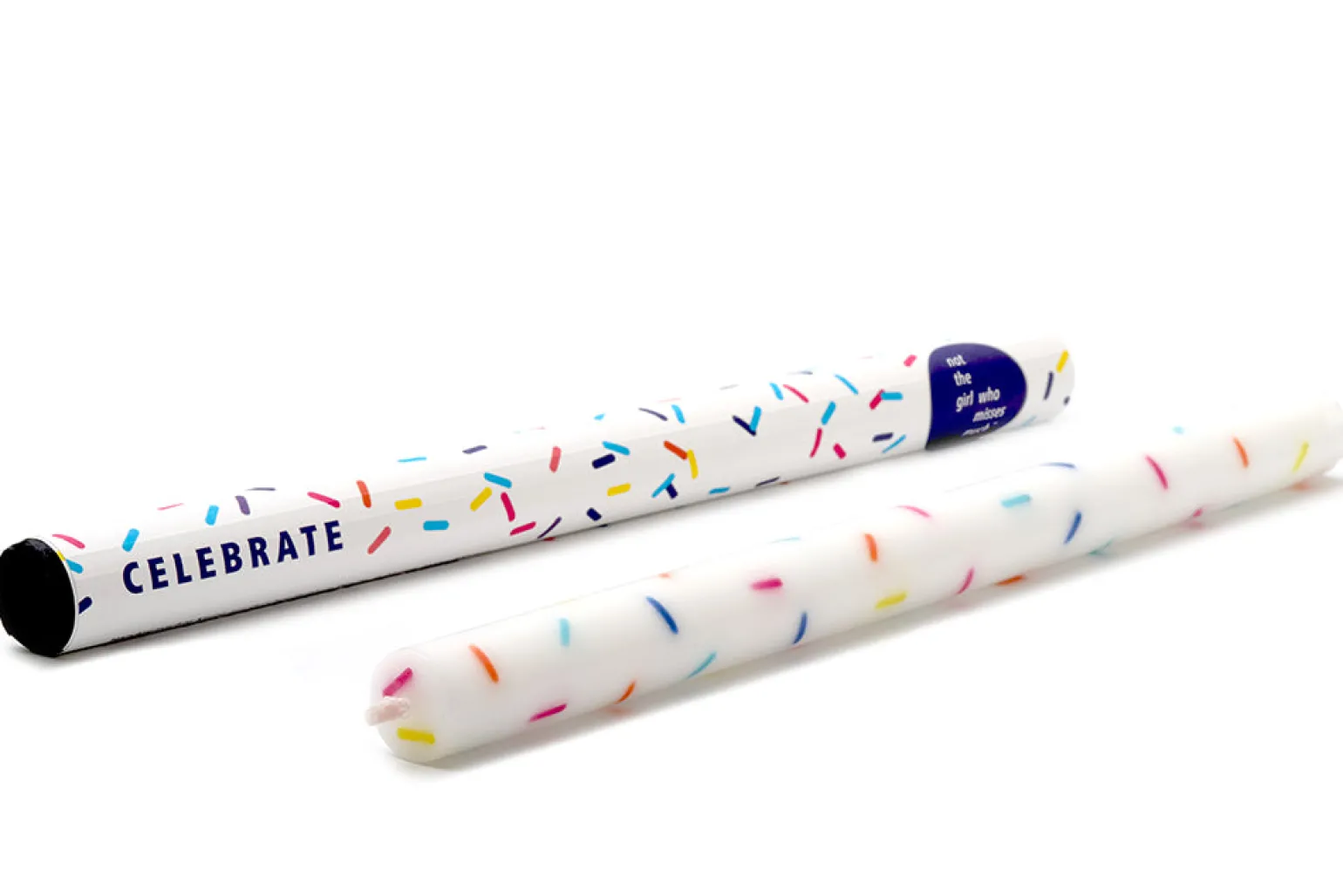 Kerze lang „Celebrate“ – Eine Kerze in extralang und mit geometrischem Muster. Mit Präzision wird das Wachs in unterschiedlichen Farben aus verschiedenen Winkeln aufeinander gegossen. So entstehen tolle farbenfrohe geometrisch Formen und die fertige Kerze sieht mit ihren bunten Farben absolut süß aus.
