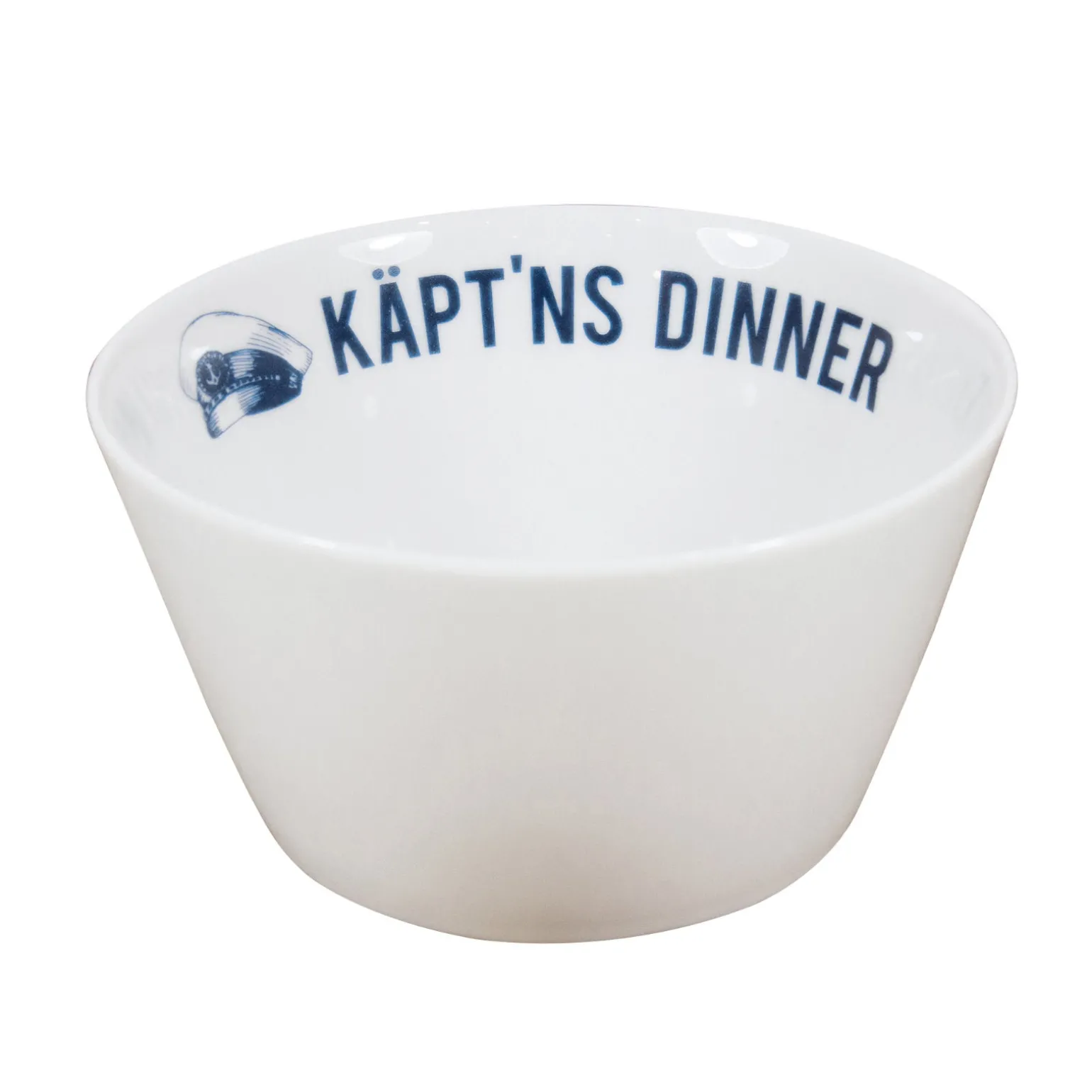 Porzellanschale Käpt’ns Dinner – Ob mit Müsli und Obst auf dem Frühstückstisch oder mit Knabberkram am Abend auf der Couch. Mit dieser Schale ist jede Mahlzeit ein Käpt’ns Dinner.