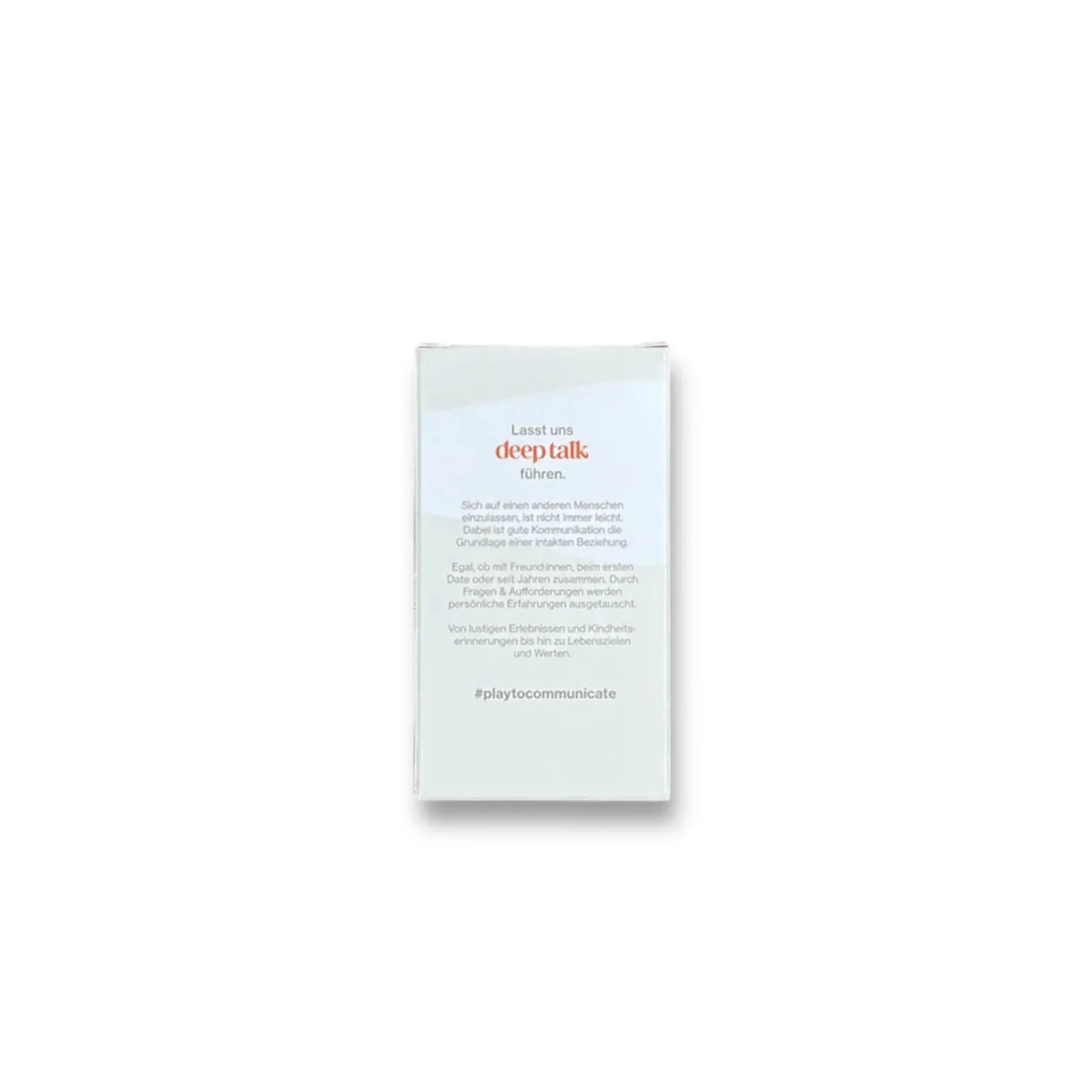 The Deep Talk ist ein kommunikatives Fragen-Kartenspiel. Die klassische Version beinhaltet 90 Fragekarten und 21 Spezialkarten, die für neuen Input sorgen. Die Blankokarten können kreativ für eigene Fragen genutzt werden. Die Fragen sind in 3 Level unterteilt, die je nach Level intensiver und deeper werden. Fangt bei Level 1 an oder traut Euch direkt an den Stapel aus Level 3 heran.
