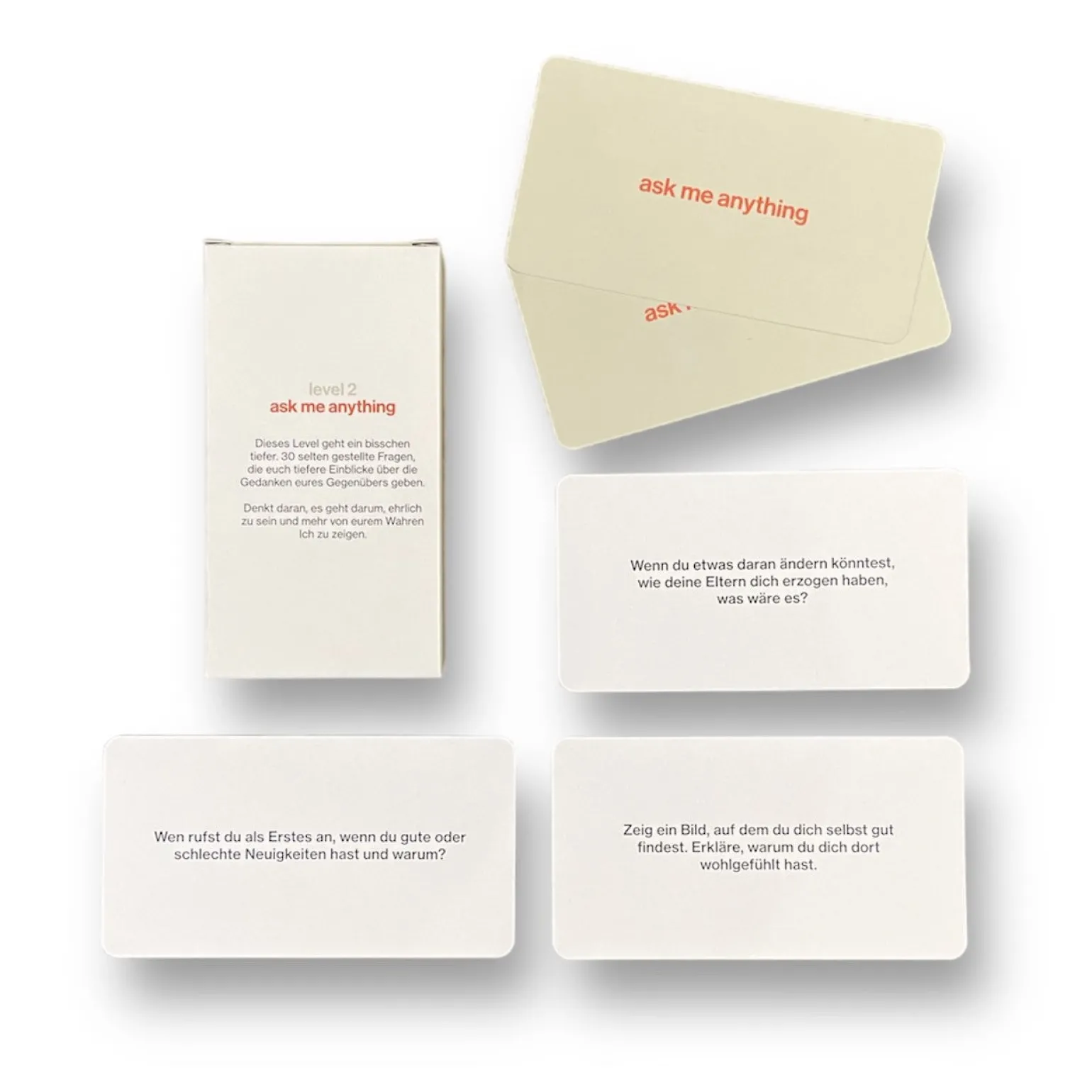 Egal, ob mit Freund:innen, beim ersten Date oder seit Jahren zusammen. Durch Fragen & Aufforderungen werden persönliche Erfahrungen ausgetauscht.