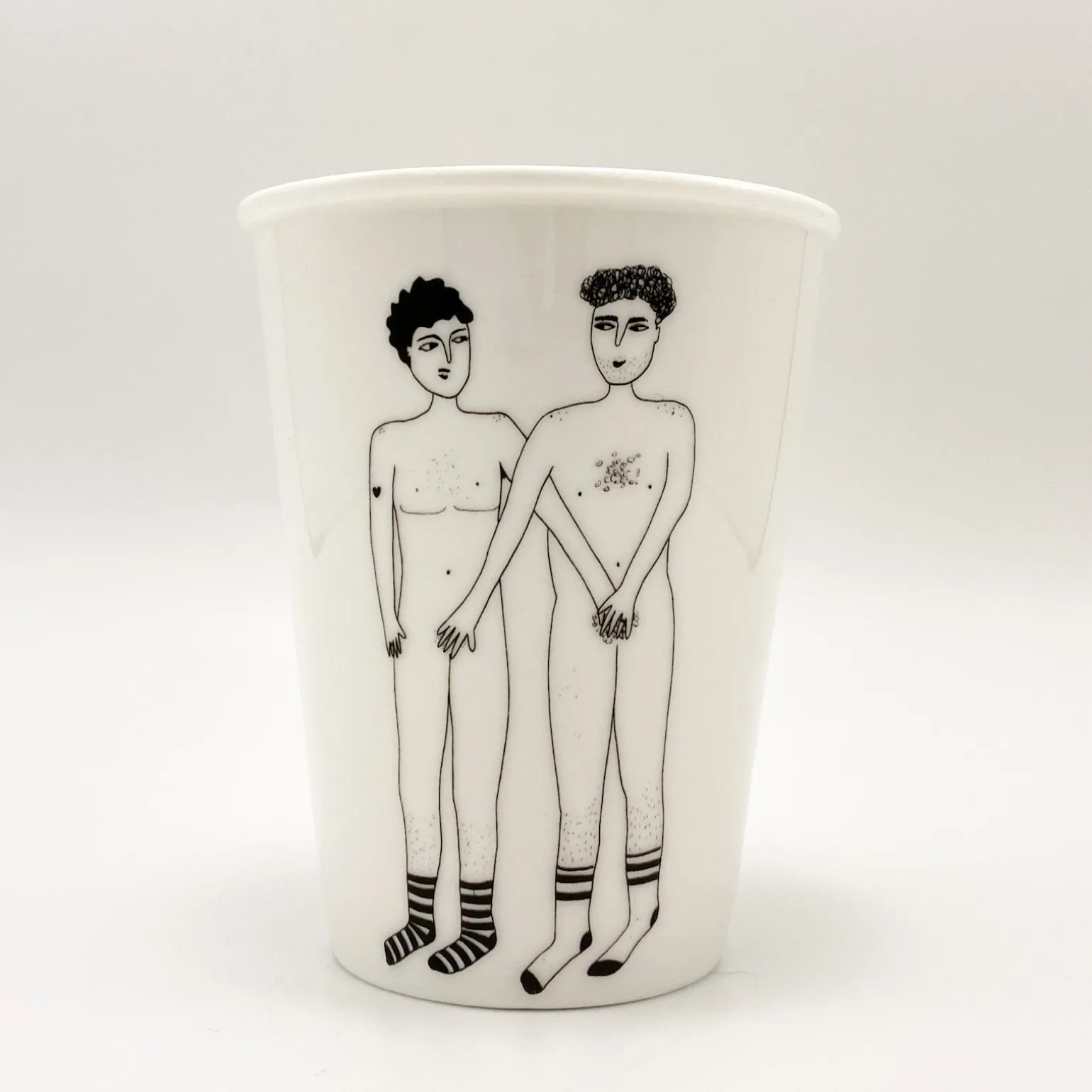 cup „2 willies“ – helen b – Keramik Becher mit handgemachter Illustration als Motiv.