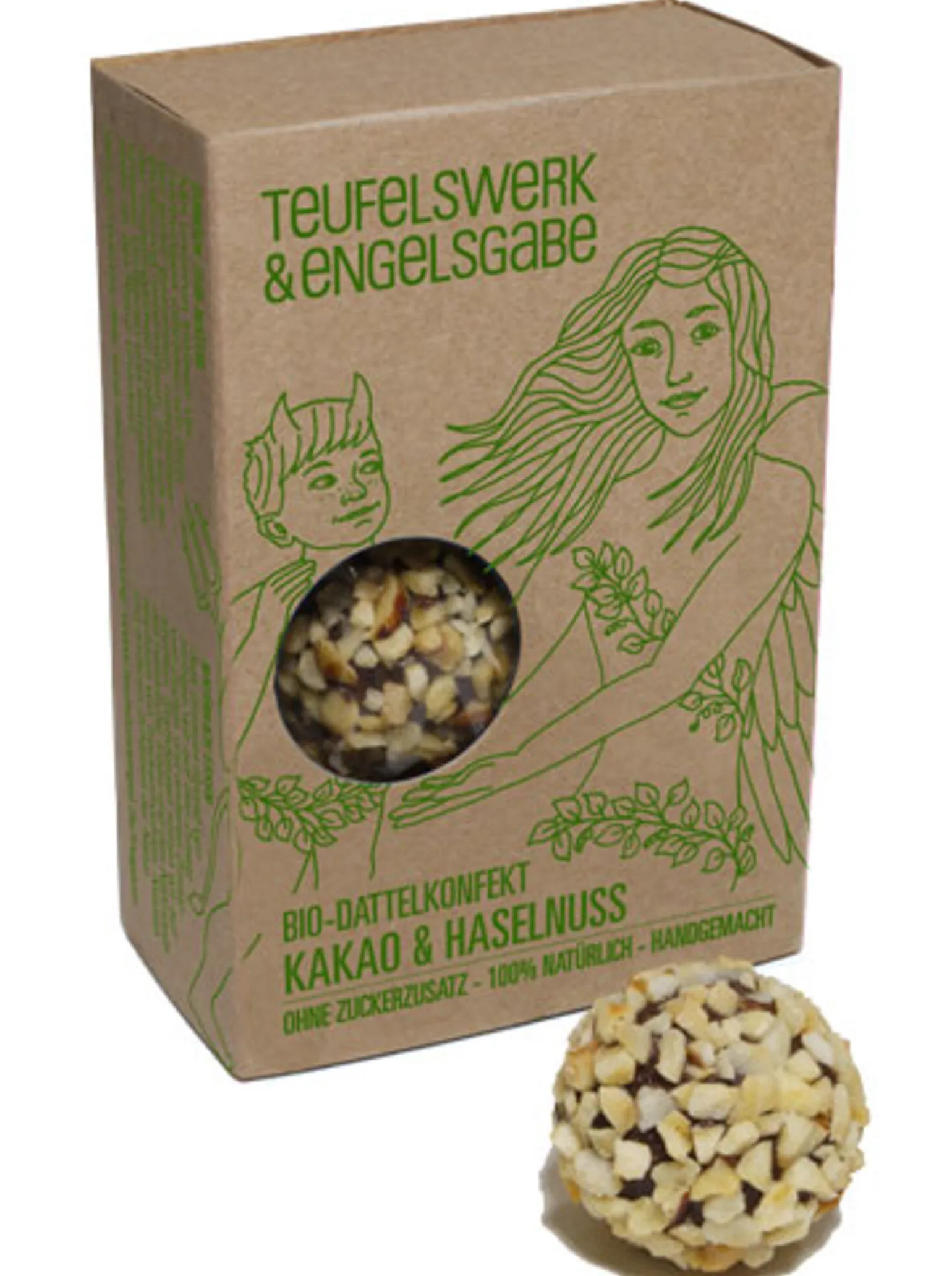 Schön zu wissen: Teufelswerk & Engelsgabe legt großen Wert auf fairen Handel und Nachhaltigkeit. So stammen alle Zutaten aus kontrolliert biologischem Anbau. Die Datteln werden über die Gebana bezogen, eine Schweizer Organisation, die tunesische Bauernfamilien unterstützt, ihre Bio-Datteln nachhaltig und zu fairen Konditionen am Weltmarkt zu verkaufen.