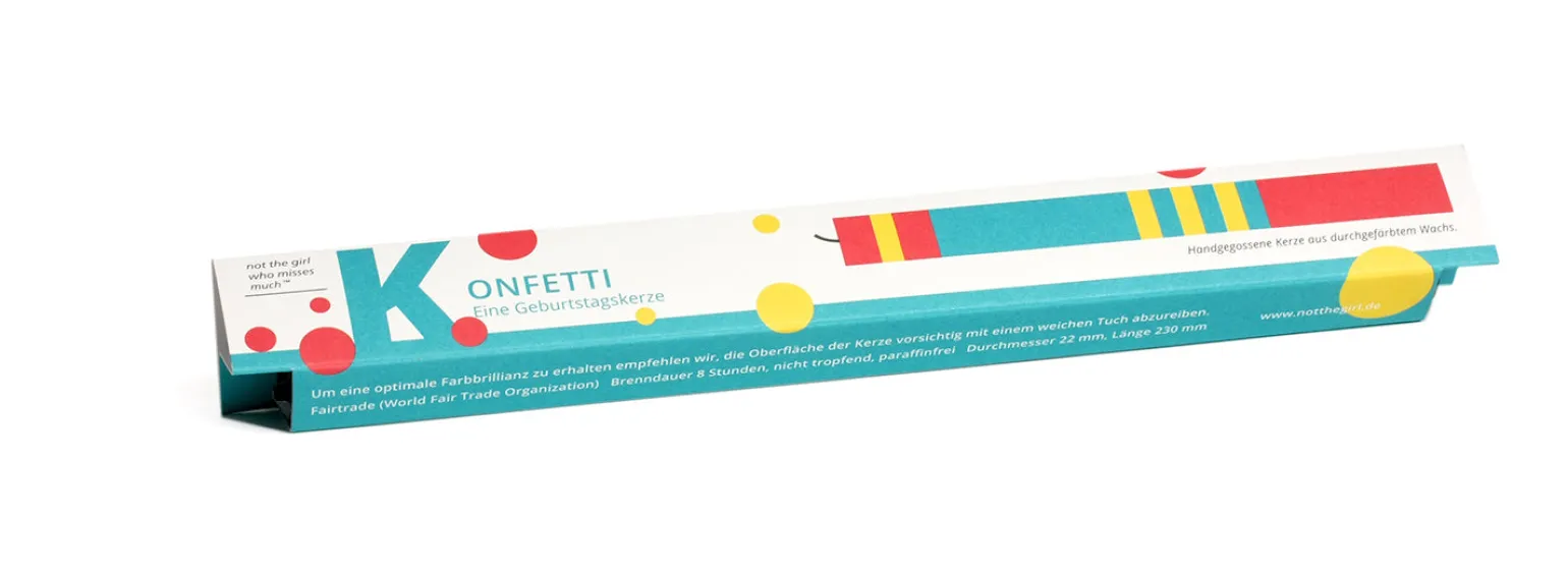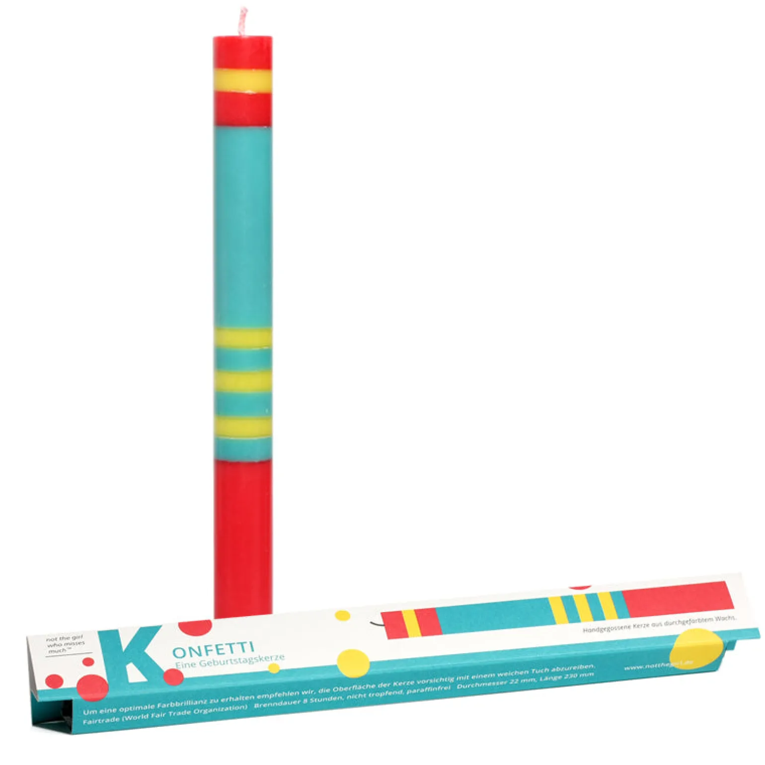 Grußkerze „Konfetti“ – Eine Kerze mit Thema. Ob Geburtstag, zur Geburt oder einfach so für die beste Freundin, diese bunte Kerze mit Grußbotschaft passt zu jedem Anlass und sieht mit ihren bunten Farben absolut süß aus.