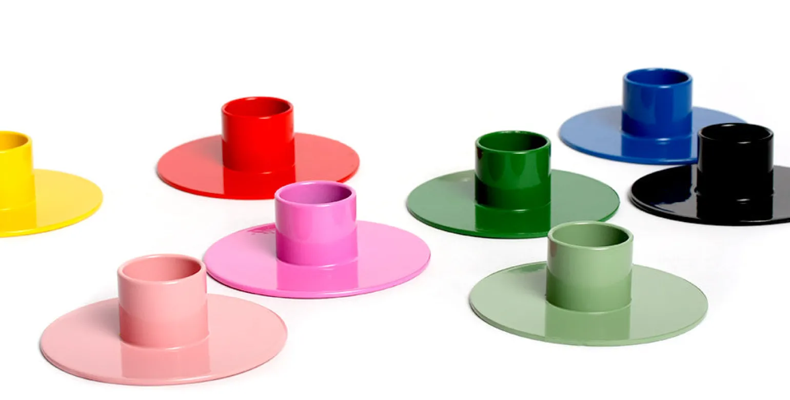 Sehr simple gehalten und doch auffallend. Die kleinen Kerzenhalter halten jede Standardkerze fest und verleihen ihrem Umfeld einen POP Farbe.